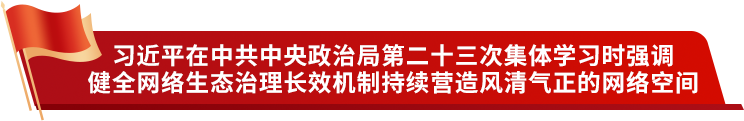 习近平强调,网络生态治理在国家治理中占有重要地位。要在党中央集中统一领导下,健全网络综合治理格局,形成治理合力。各级各部门要强化管网治网的政治责任和领导责任,及时有效解决突出问题,不断提高运用网络了解民意、开展工作的能力。要加强对网络平台、自媒体和多频道网络机构的引导,促使其担负社会责任,自觉成为正能量传播者。